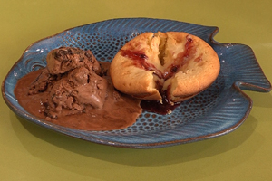 Desenforme os petis gatêaus ainda quentes em pratos individuais e sirva-os com uma bola de sorvete